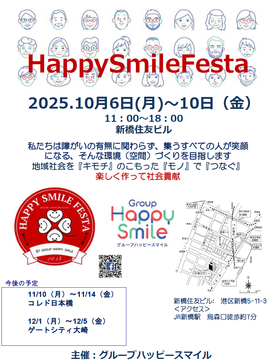 今月もハッピースマイル主催のイベント【ハッピースマイルフェスタ 】に参加します! 今月の開催場所は新橋住友ビルです!